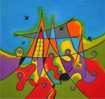 - Ik heb een kraam met allerlei kleine schilderijen,sieraden en sjaals in de technieken inkt op zijde, aquarel, en keramiek.